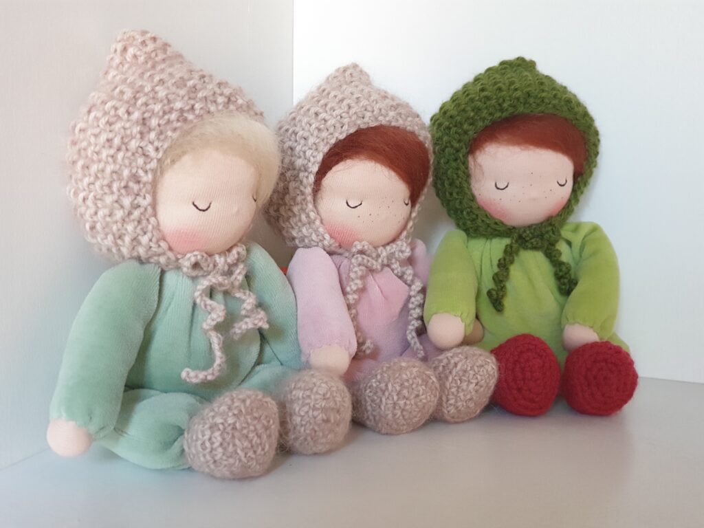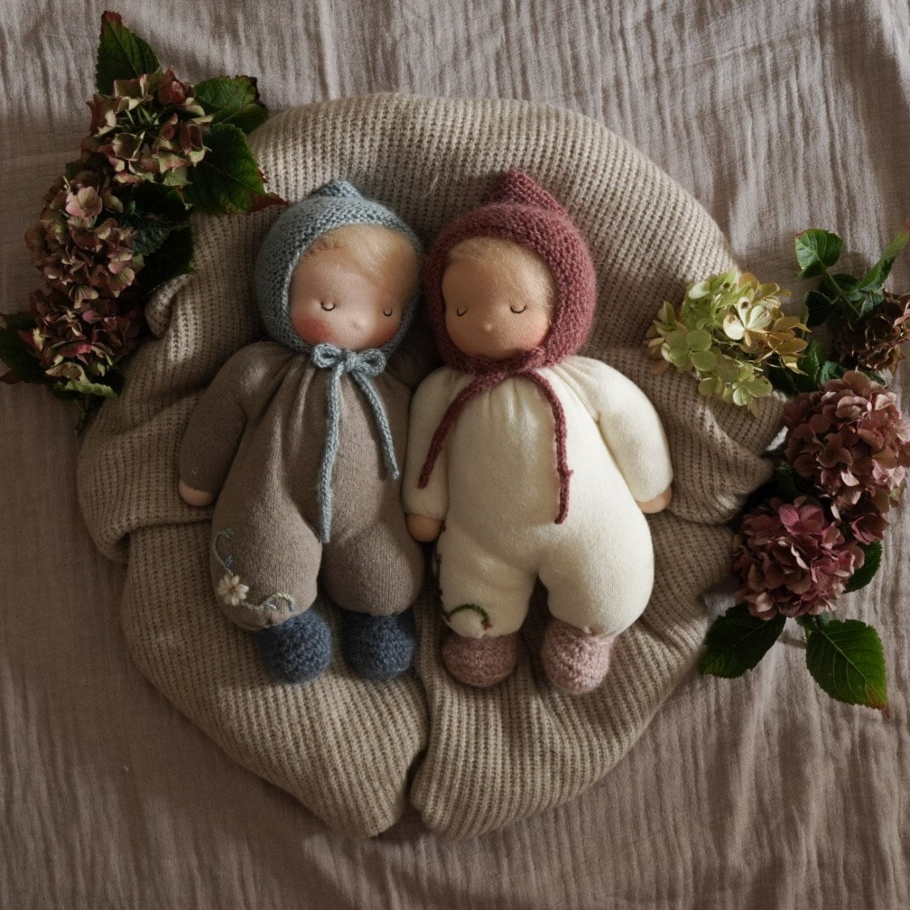 Noa’s baby poppen zijn poppen met een heerlijk zacht verlours lijfje kleine slofjes en een heerlijk zacht strimutsje. Ze hebben een wat steviger buikje en zacht gevulde armen en benen.